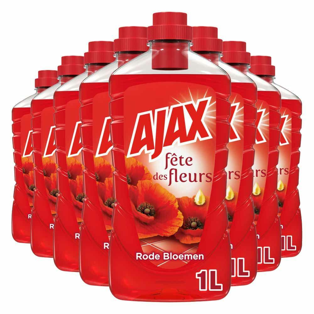 Ajax Allesreiniger - Rode Bloemen - 8x 1000ml - Voordeelverpakking c