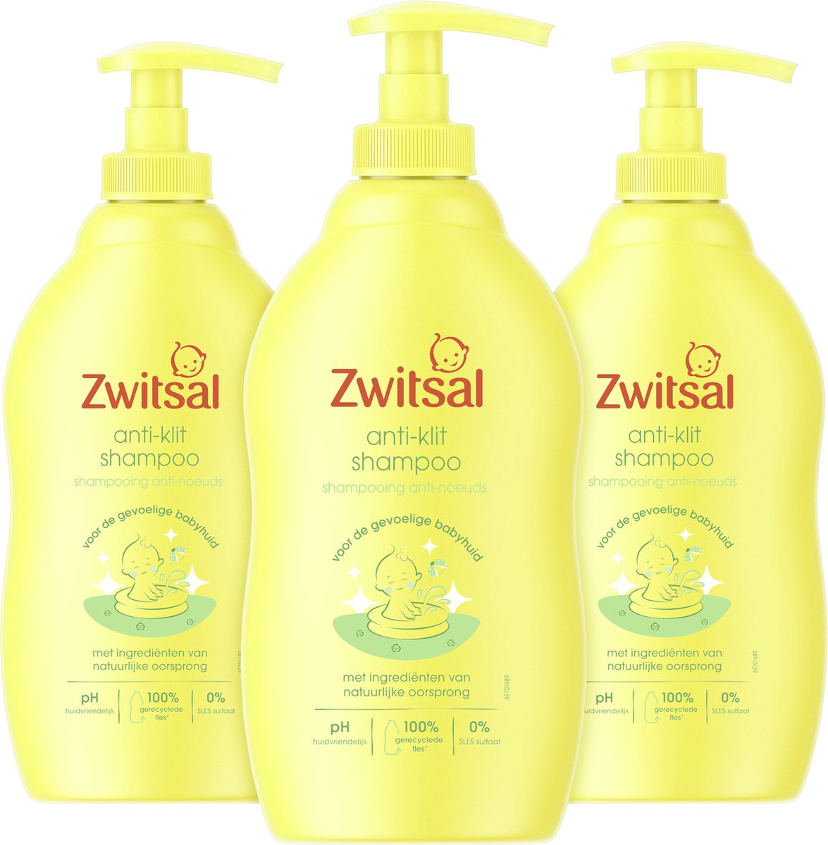 Zwitsal Baby Shampoo - Anti Klit - Met Pompje - 3x 400ml