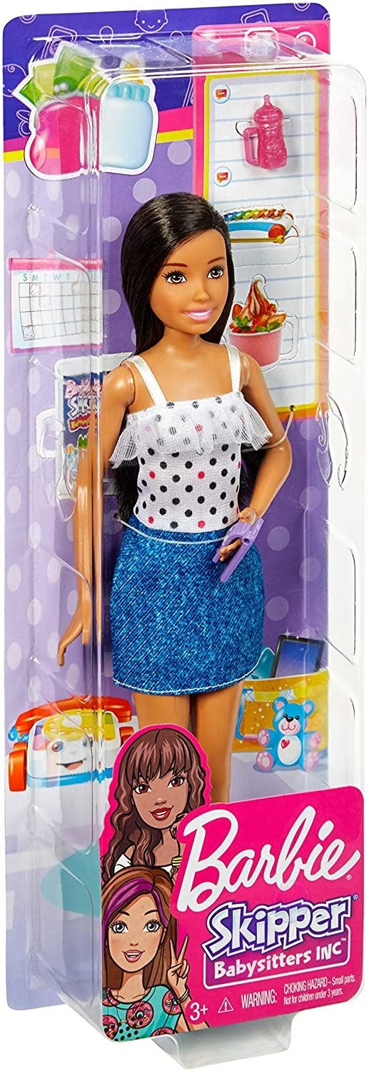 Kinderen kunnen heel eenvoudig babysitter spelen – met de Barbie Skipper Babysitters Inc.-babysets, die een pop en accessoires bevatten. Deze babysitterpop is klaar voor de nacht en heeft een mobiele telefoon en een flesje inbegrepen. Broers en zussen en zorgzame babysitters kunnen met dit speelgoed samen met een van skippers vrienden veel leuke verhalen naspelen.