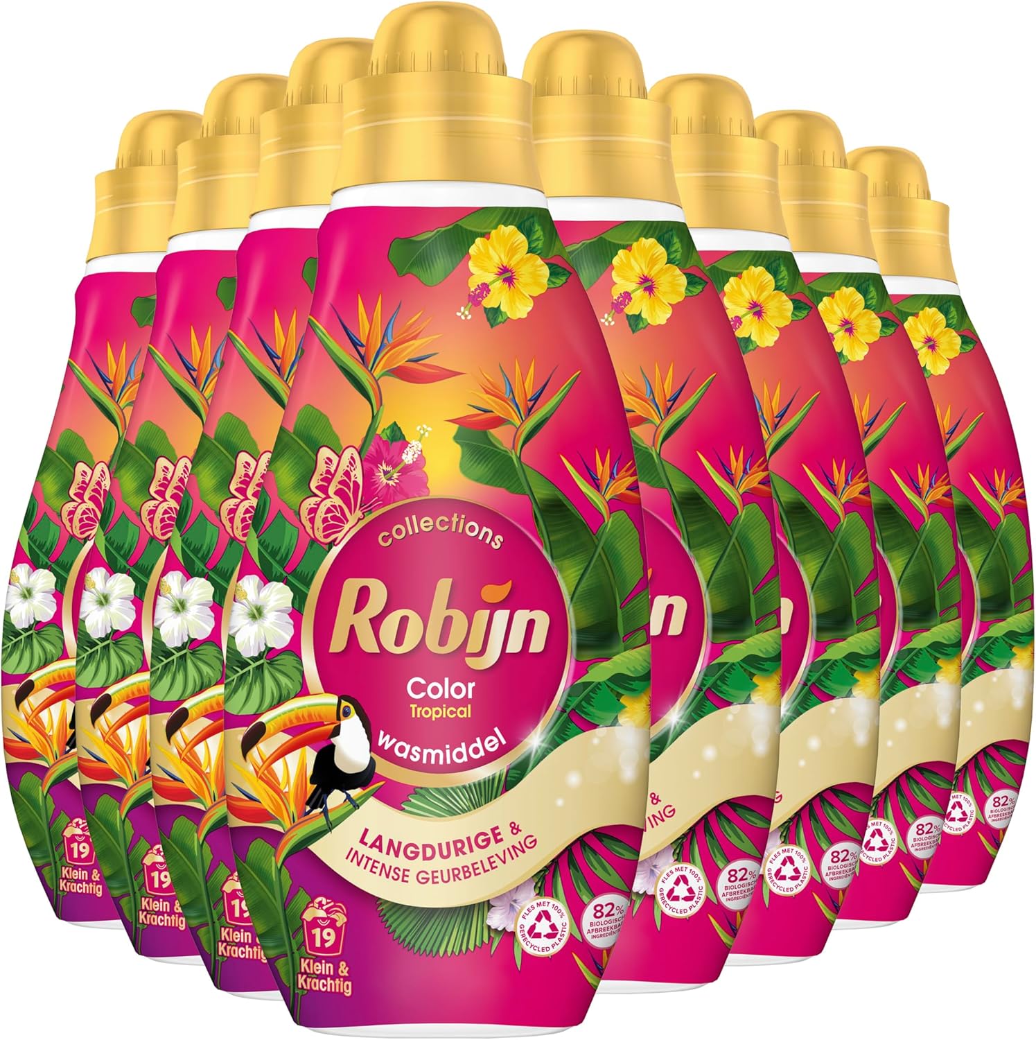 Robijn Klein & Krachtig Collections Color Tropical Vloeibaar Wasmiddel bevat 86% biologisch afbreekbare ingrediënten en helpt kleuren langer mooi te houden.