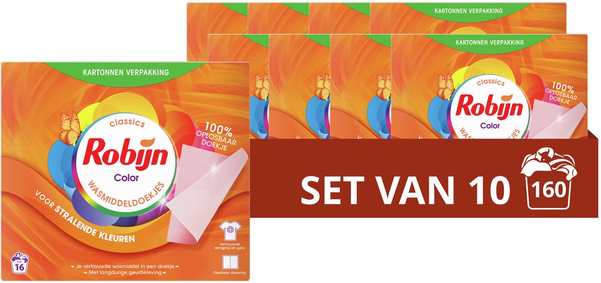 - Robijn Classics Color Wasmiddeldoekjes houden kleuren en kleding lang mooi