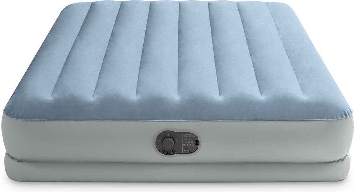 Het Intex Comfort Mid Rise luchtbed biedt een snelle en comfortabele slaapoplossing. De binnenkant van het luchtbed is gevuld met duizenden polyester vezels en heeft een unieke vloerringconstructie voor een stabiele ligplek. Het zachte velvet slaapoppervlak zorgt voor een goede nachtrust. Het luchtbed kan eenvoudig worden opgeblazen met de elektrische pomp en kan indien nodig ook worden opgeblazen met een handpomp als er geen elektriciteit beschikbaar is. Dankzij de breedte van 152 cm biedt dit luchtbed ruim voldoende plaats voor 2 personen.