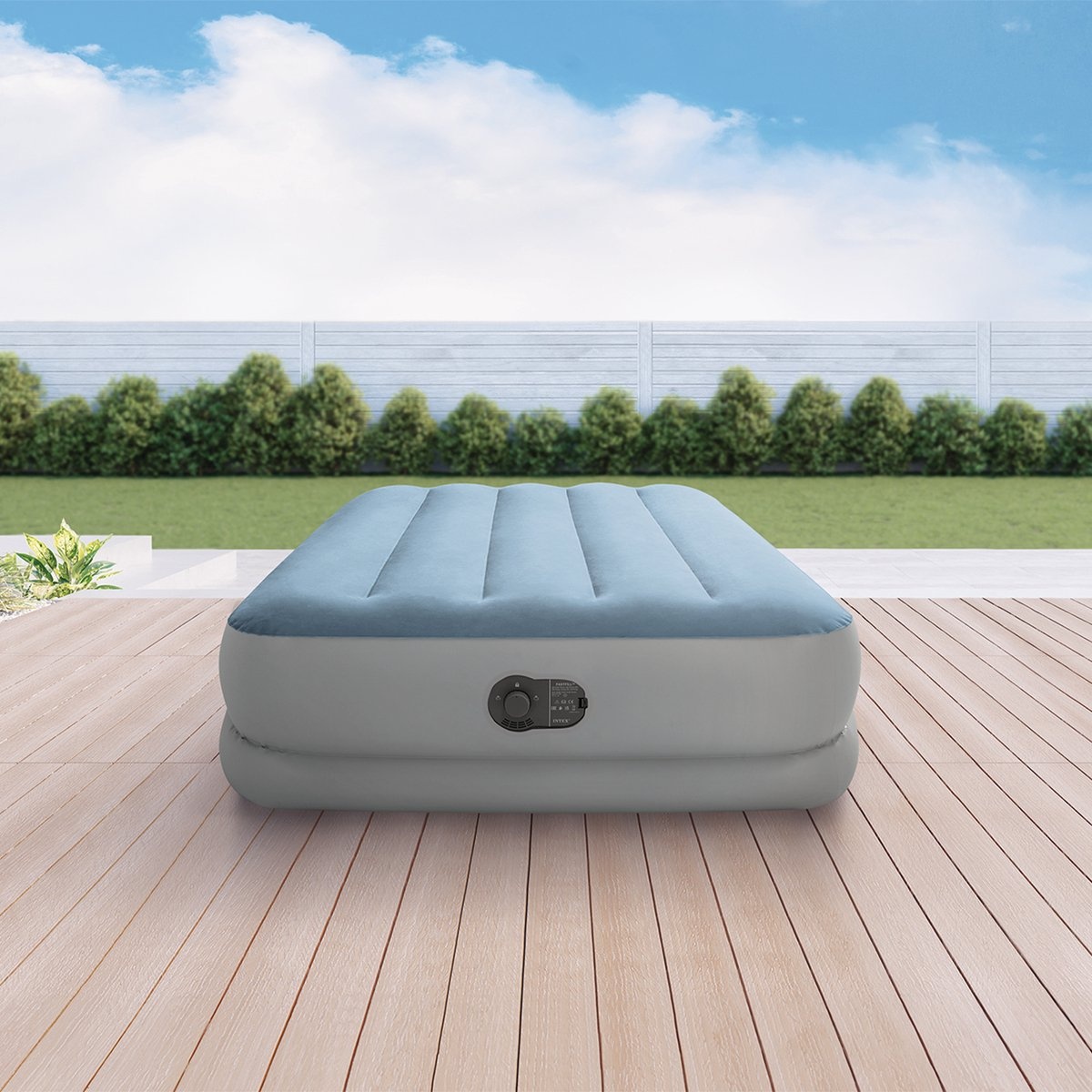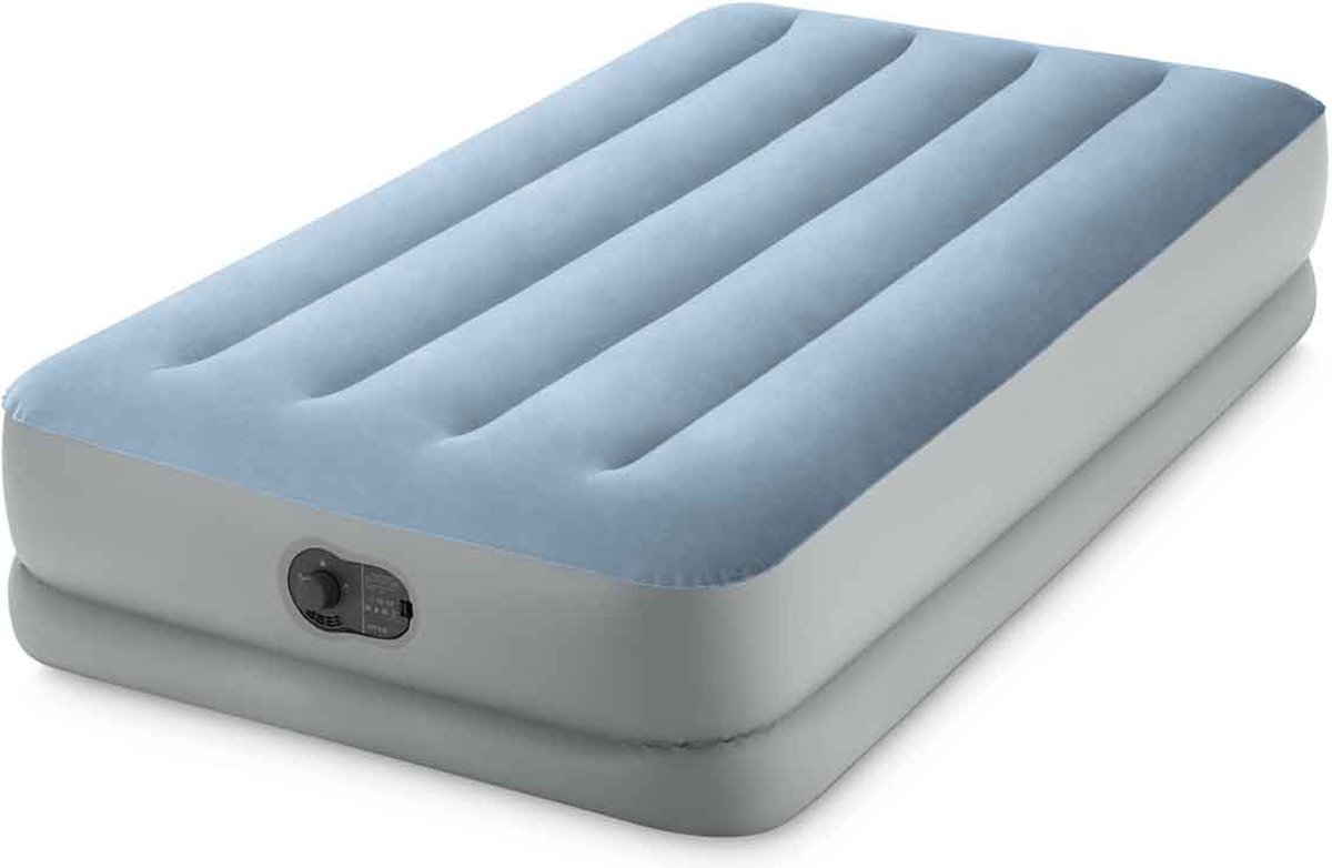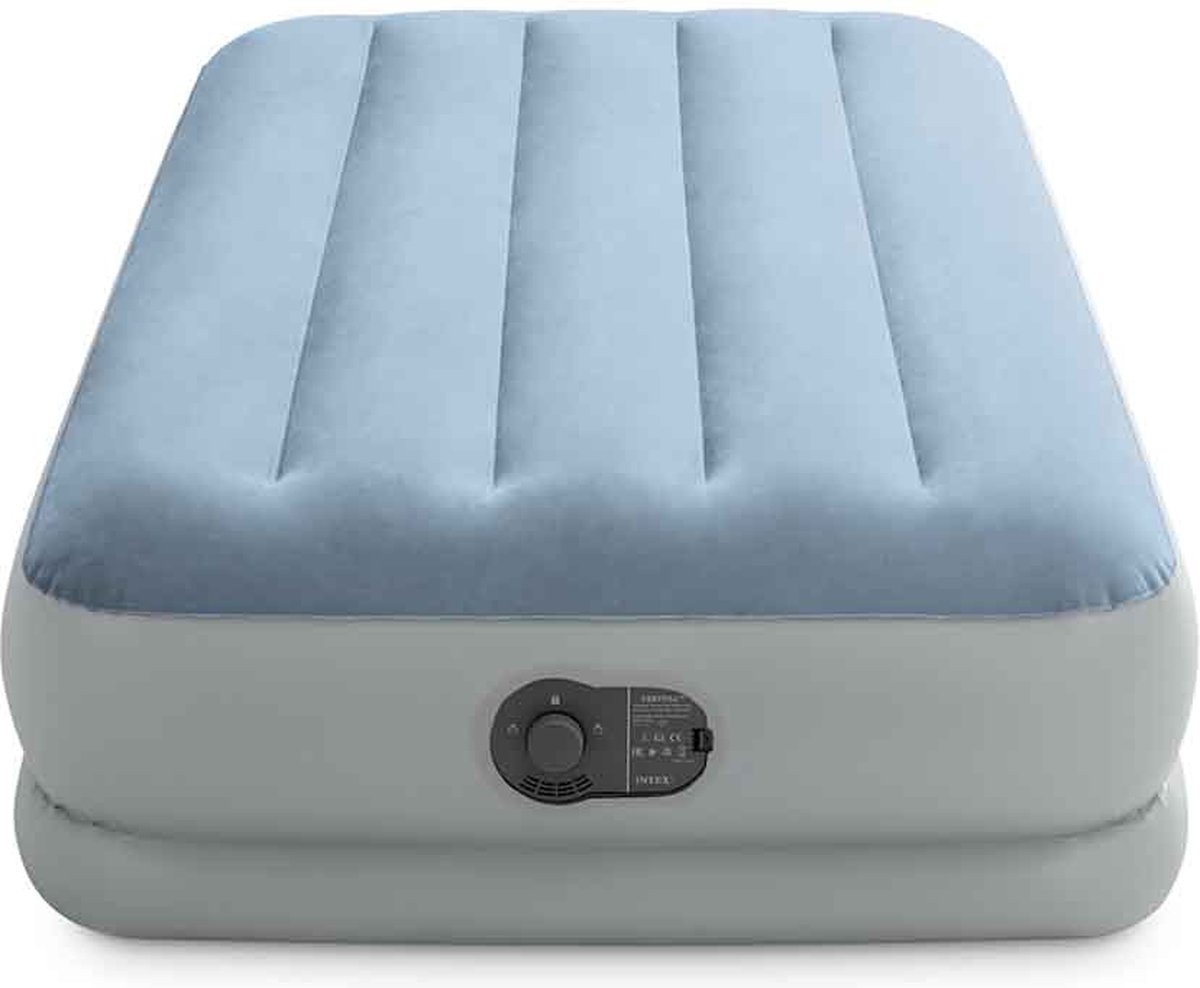 Het Intex Comfort Mid Rise luchtbed biedt een snelle en comfortabele slaapoplossing. De binnenkant van het luchtbed is gevuld met duizenden polyester vezels en heeft een unieke vloerringconstructie voor een stabiele ligplek. Het zachte velvet slaapoppervlak zorgt voor een goede nachtrust. Het luchtbed kan eenvoudig worden opgeblazen met de elektrische pomp en kan indien nodig ook worden opgeblazen met een handpomp als er geen elektriciteit beschikbaar is. Dankzij de breedte van 99 cm biedt dit luchtbed ruim voldoende plaats voor 1 persoon.