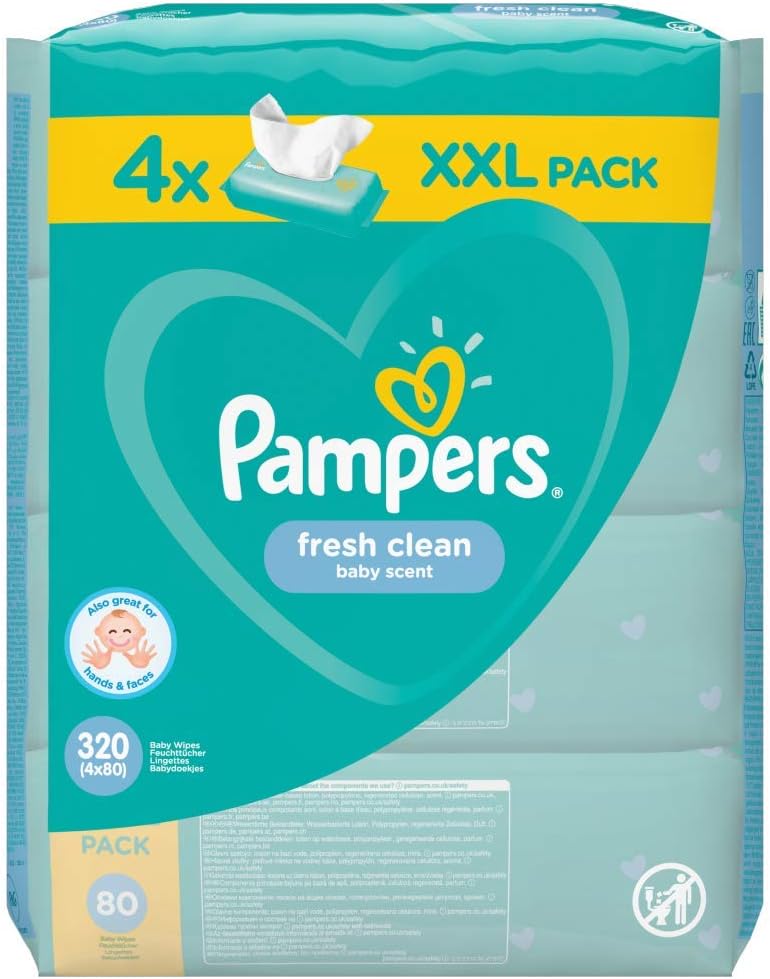 Pampers Fresh Clean Billendoekjes / Babydoekjes XL - 4x 80 stuks c