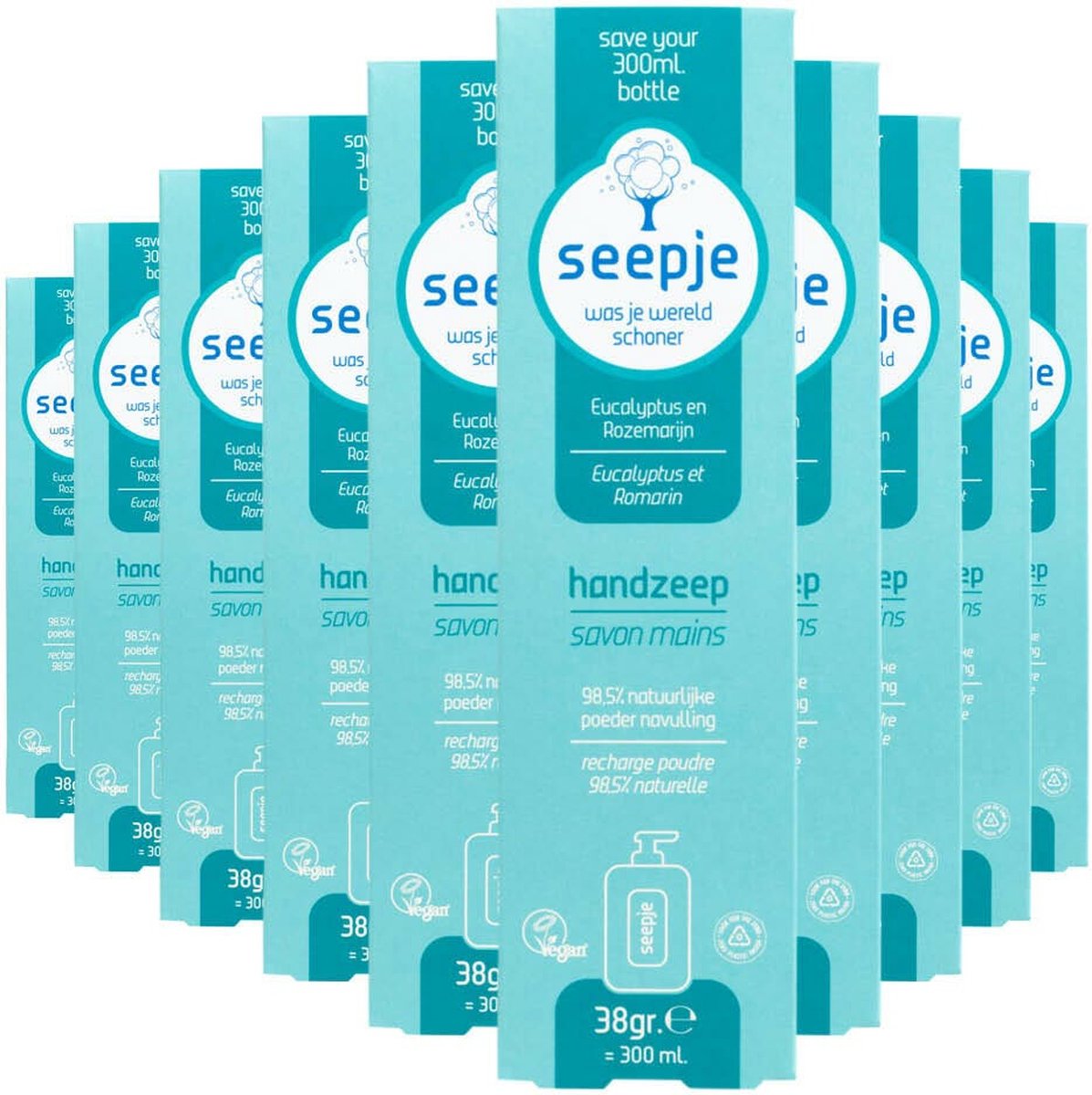 Seepje Handzeep Navulling Eucalyptus en Rozemarijn 10x 38Gr (300ml)