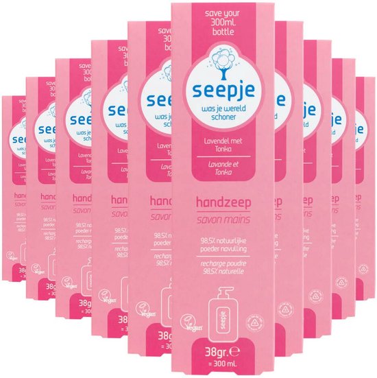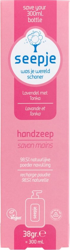 Seepje handzeep nu ook in ‘n duurzame navulpoeder. Is je favoriete Seepje handzeep leeg? Met deze navulpoeder maak je in een handomdraai 300 ml verzorgende handzeep. Zo bespaar je per navulling ‘n plastic fles!