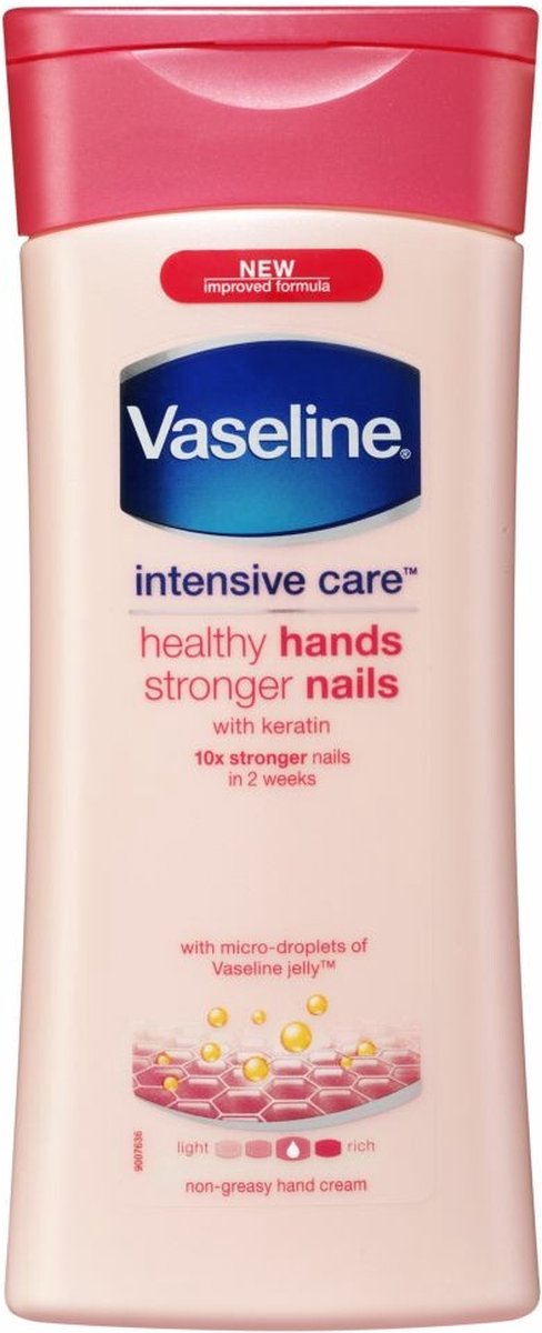 Vaseline Healthy Hands & Stronger Nails Handcrème verzorgt je handen en versterkt je nagels.