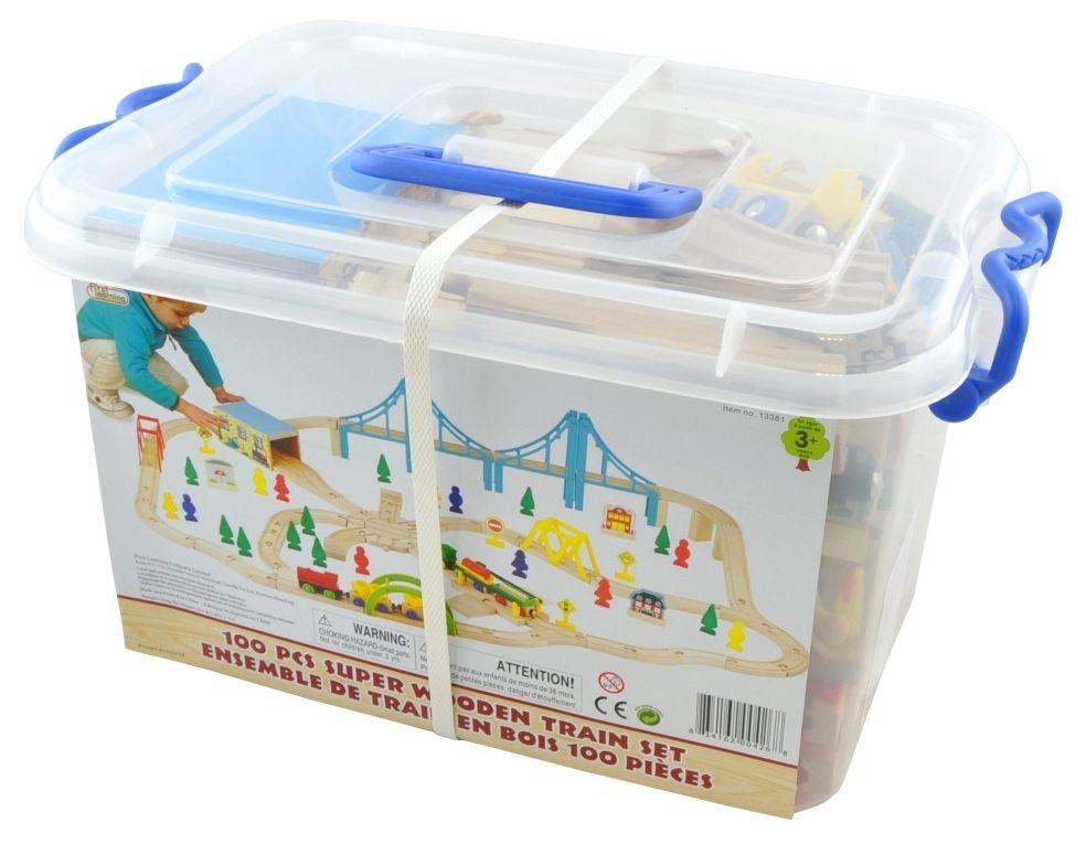 HM First Learning - Houten Trein Set - 100 Stuks - In Opbergbak