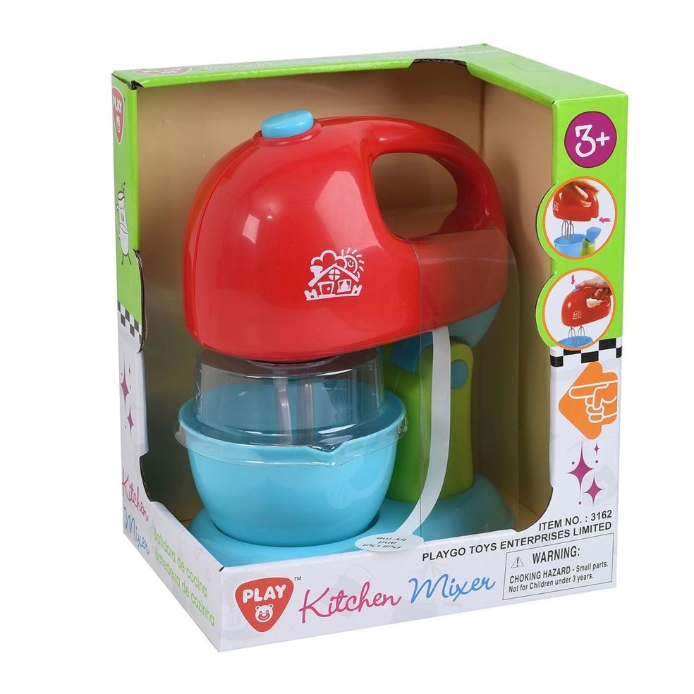 Maak heerlijke taarten en slagroom met deze mixer van Playgo. Plaats de mixer in de houder, druk op de knop en de gardes beginnen te draaien. Dat wordt smullen! De mixer en beslagkom zijn gemaakt van stevig kunststof in vrolijke kleuren. Inclusief batterijen.