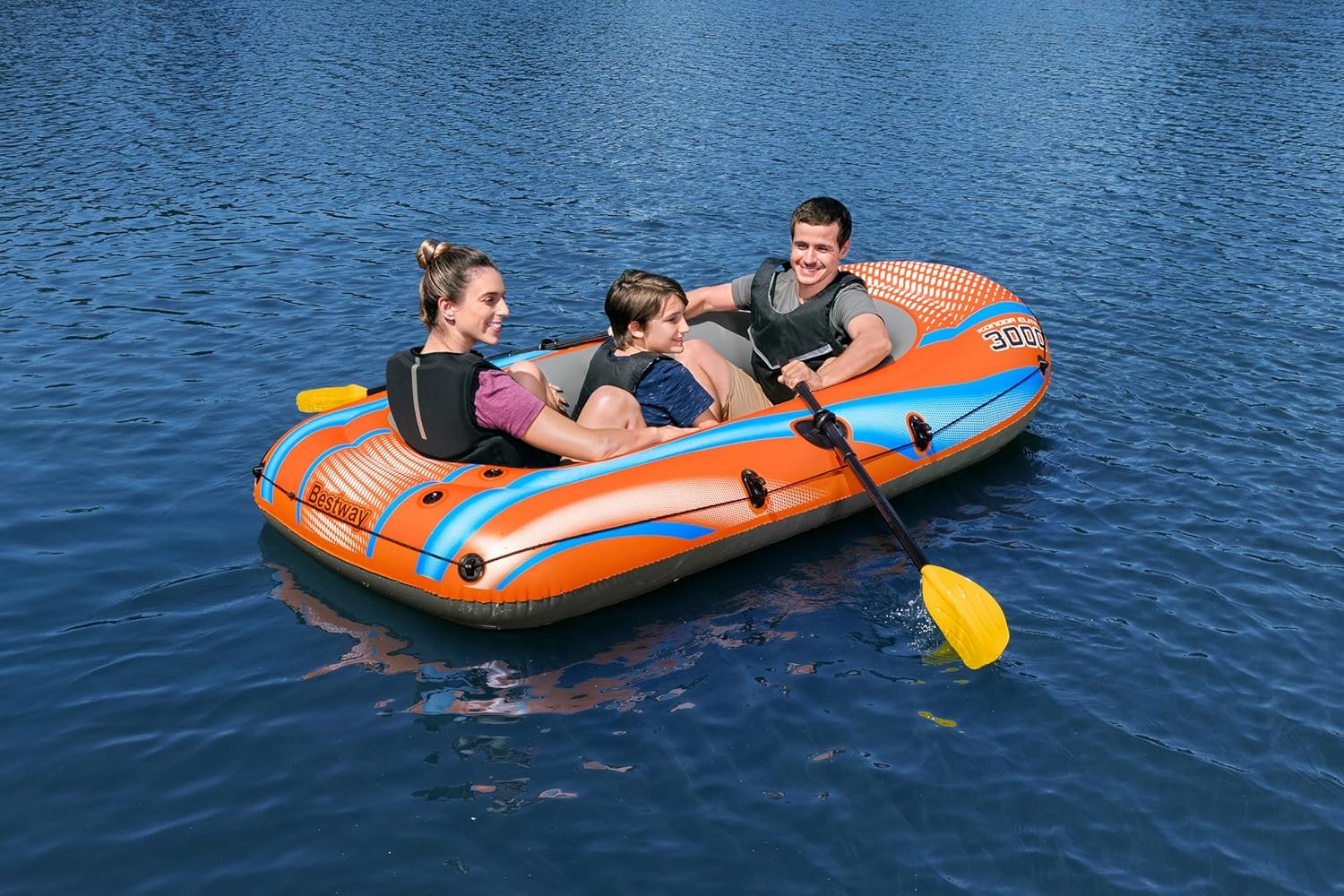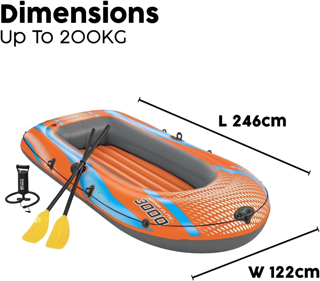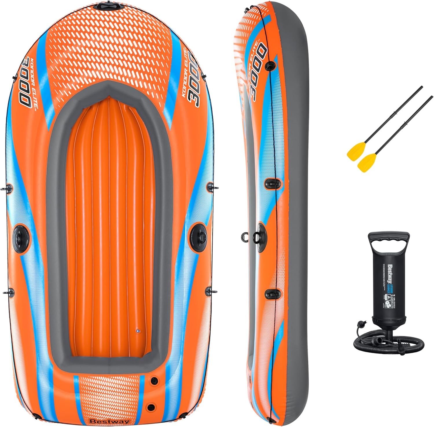 De Bestway Kondor Elite 3000 Set is zeer geschikt voor gezinnen die op zoek zijn naar een comfortabele en betrouwbare opblaasbare boot voor plezier op het water. Er is ruimte voor 2 volwassenen en 1 kind, met een maximaal draaggewicht van 200 kg.
