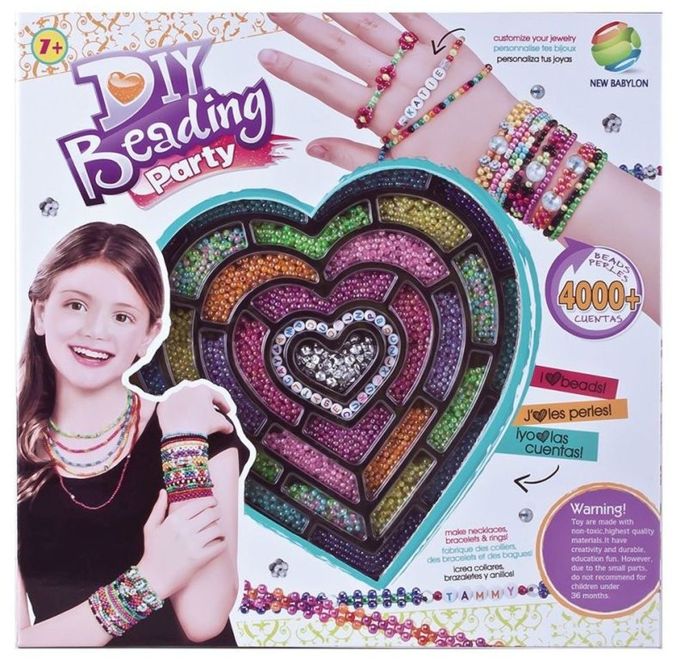 Kralen speelset. Maak zelf kettingen, armbanden en ringen! Met meer dan 4000 parels in verschillende mooie kleuren. Personalieer je juwelen met de letterkralen, zo kan je een armband of ketting met je naam maken.