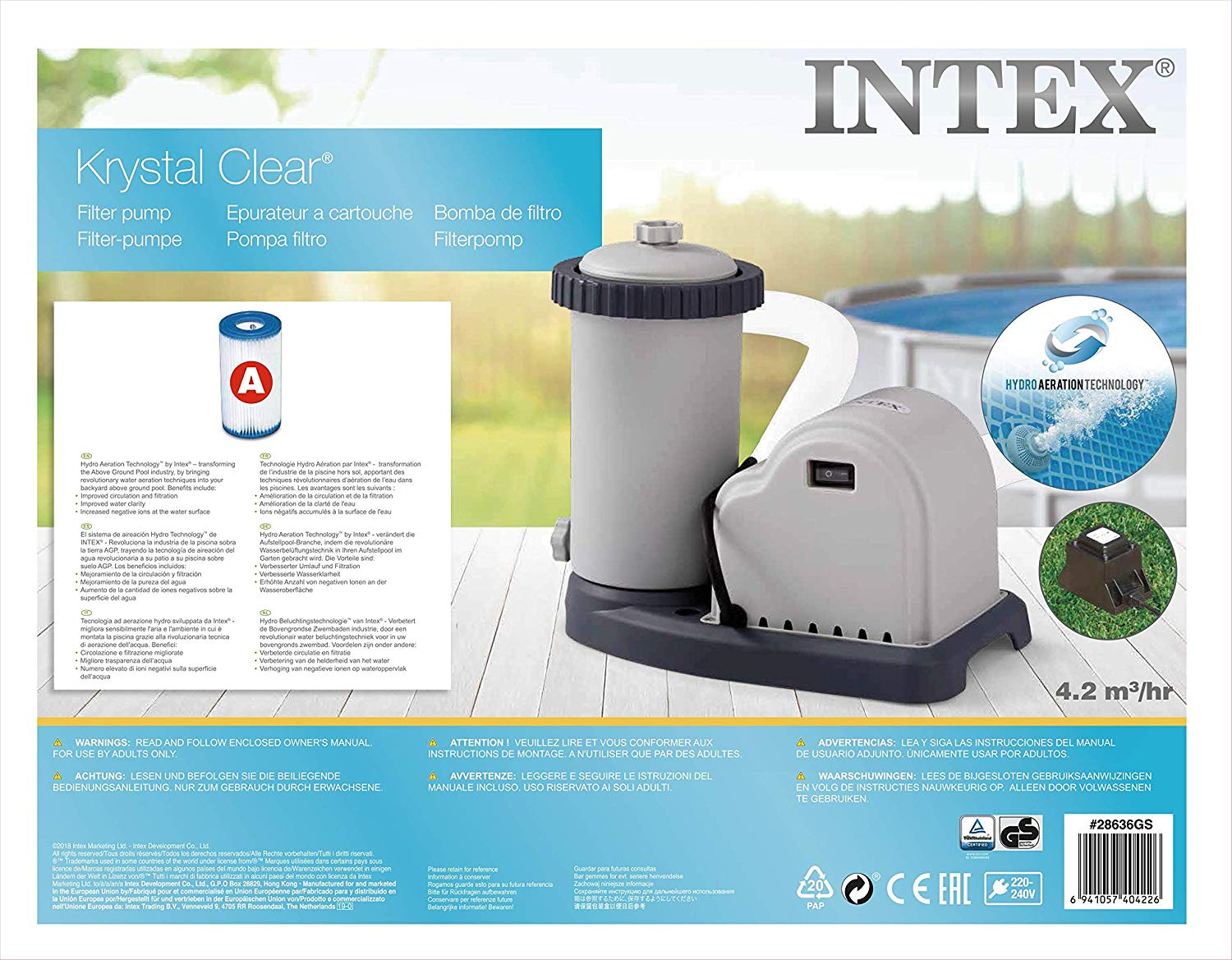 Intex Krystal Clear - filterpomp - 4,2 M³/u - 5.678 L/u - type A filter cartridge