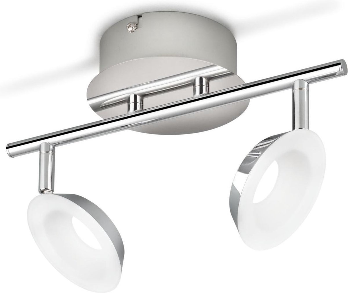 De chromen spotjes Mackinaw van Philips zijn draaibaar zodat je zelf bepaalt waar het licht op schijnt. Deze balkspot bevat 2 LED-lampen van 5 watt, die een warm wit licht geven. De totale lichtopbrengst bedraagt 880 lumen. Dankzij haar moderne design past de Philips opbouwspot van 13x30,4 cm in ieder interieur. De lamp is geschikt voor bijvoorbeeld de woonkamer of slaapkamer.