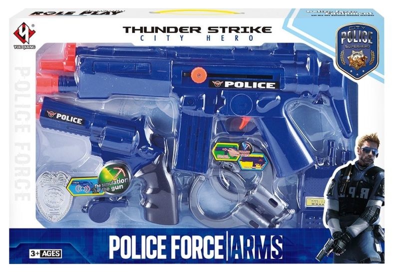Politie speelset. Deze set bevat verschillende essentiële voorwerpen die elke politieagent nodig heeft:- pistool- machinegeweer