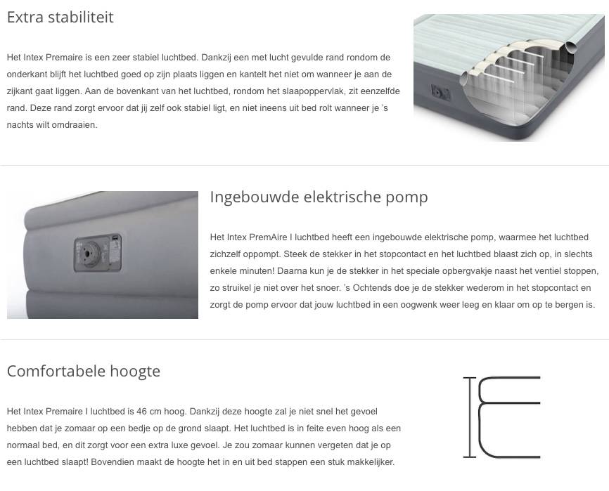 - Een hoog luchtbed maakt in- en uitstappen makkelijk