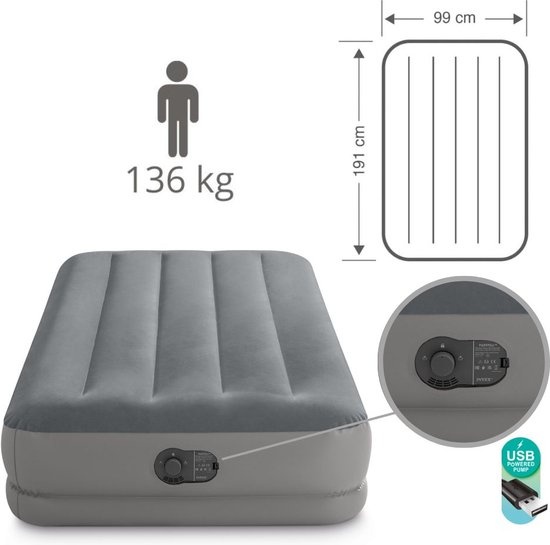 Intex Prestige Twin Mid-Rise Luchtbed - 1-persoons - Ingebouwde USB pomp 191x99x30cm