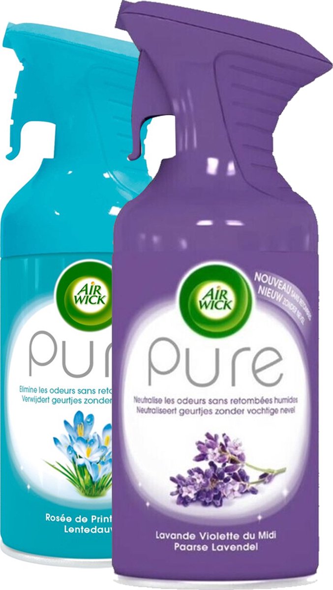 Air Wick Pure Luchtverfrisser Spray 250ml - 1x Lentedauw & 1x Paarse Lavender