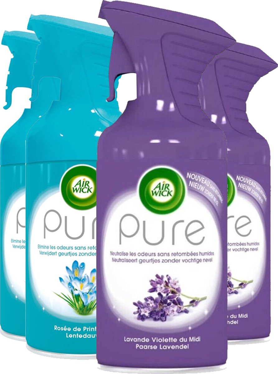 Air Wick Pure Luchtverfrisser Spray 250ml - 2x Lentedauw & 2x Paarse Lavender