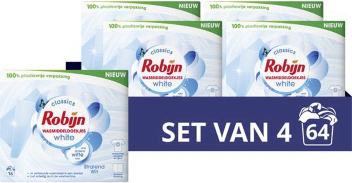 • Robijn Classics Stralend Wit Wasmiddeldoekjes voor een stralend witte was