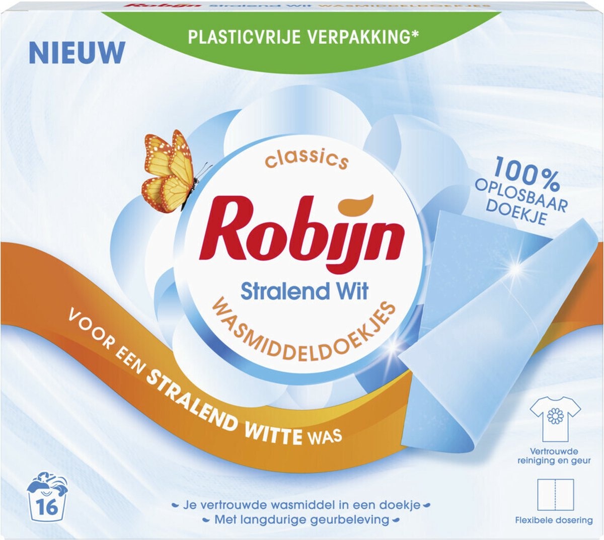 Robijn Classics Stralend Wit Wasmiddeldoekjes houden je kleding stralend wit en zijn bovendien een duurzamere manier om te wassen.