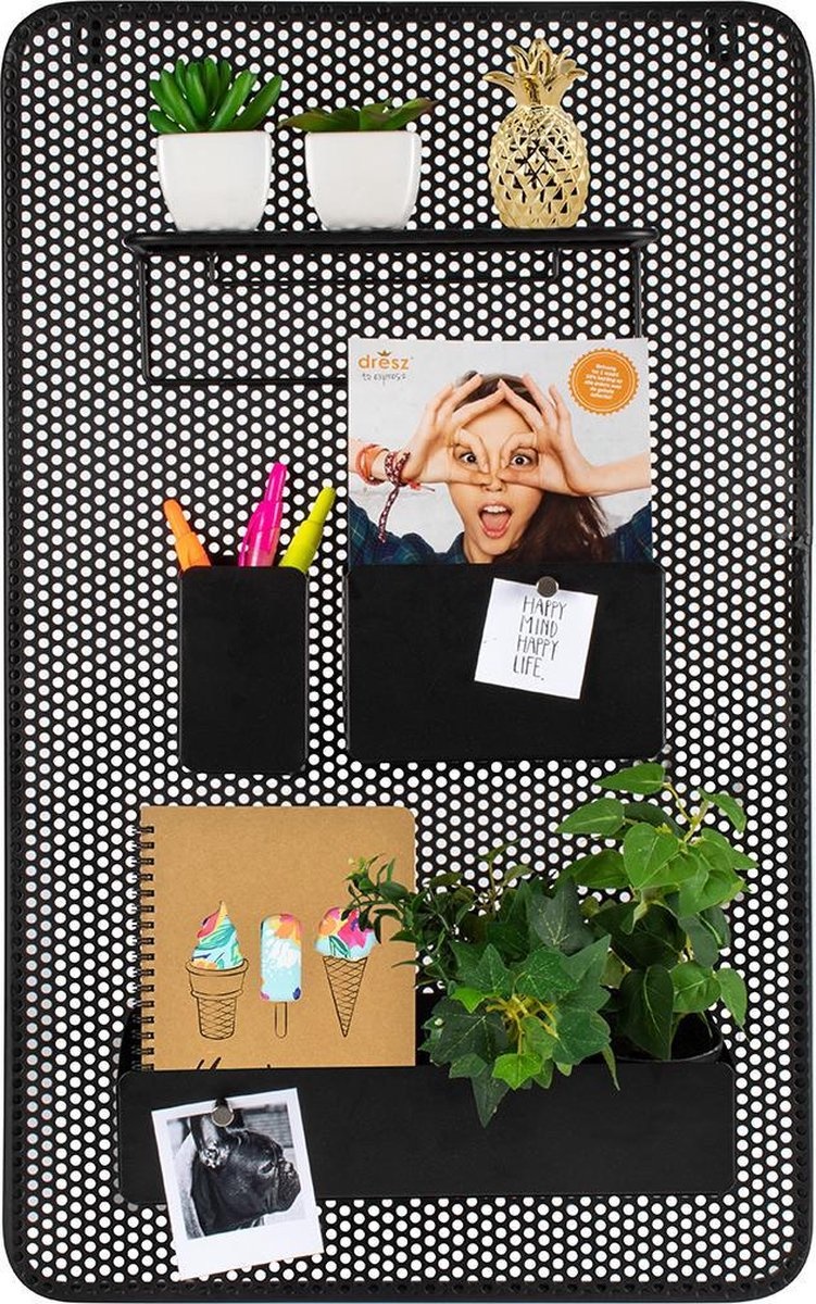 Dit metalen wandrek is uitermate geschikt om al jouw meest gebruikte spullen op één centrale locatie in jouw huis te bewaren. Stop bijvoorbeeld jouw sleutels in een van de bakjes van het rek zodat je ze altijd snel kan pakken als je haast hebt. Of klem jouw to-do lijst en die van jouw familieleden of huisgenoten op het rek en hou zo overzicht van wat iedereen nog moet doen.