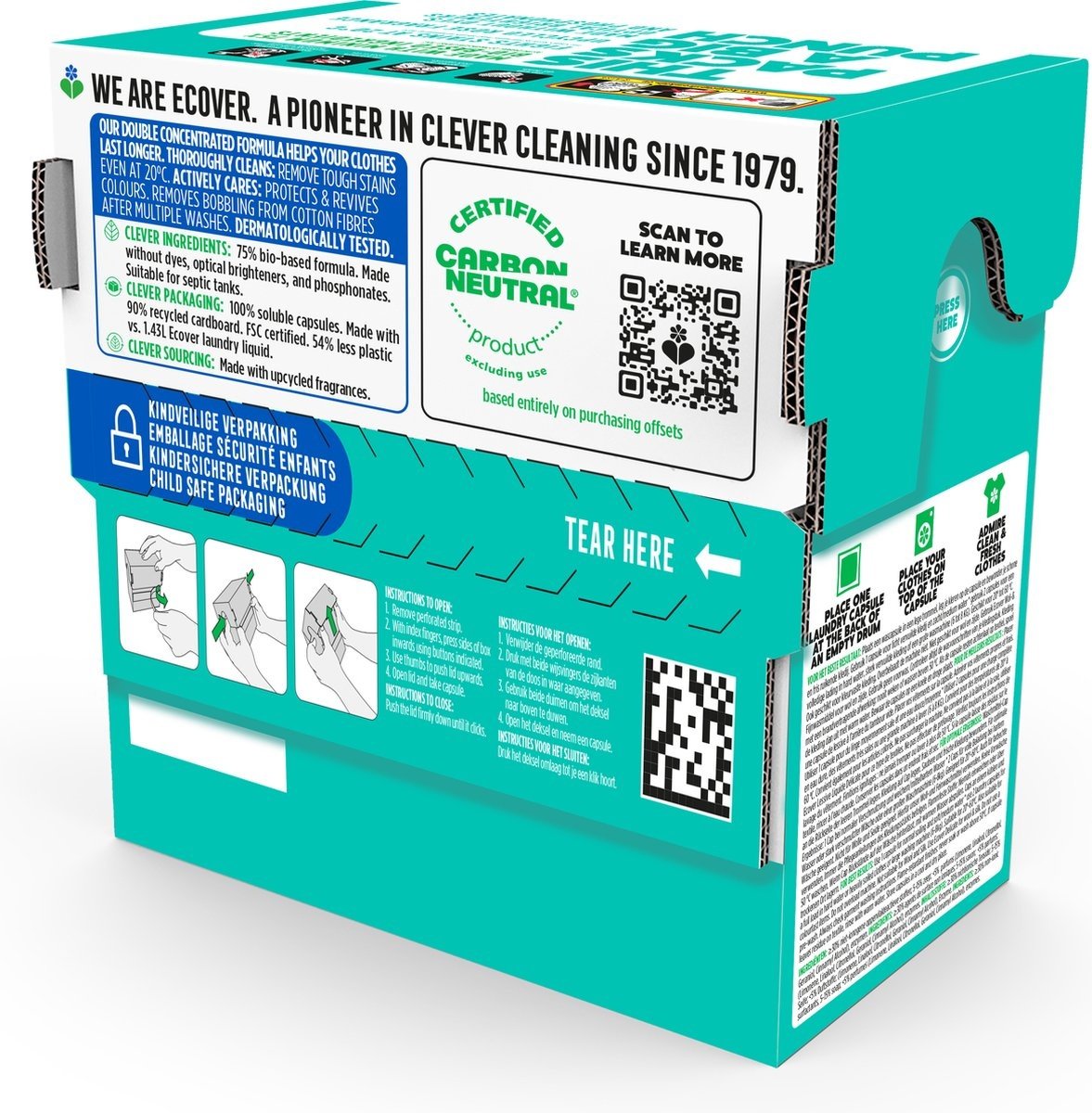 Ervaar effectieve waskracht met een duurzame twist. Ecover Universal Wascapsules verwijderen hardnekkige vlekken al vanaf 20°C en beschermen tegelijk je kleding én het milieu.